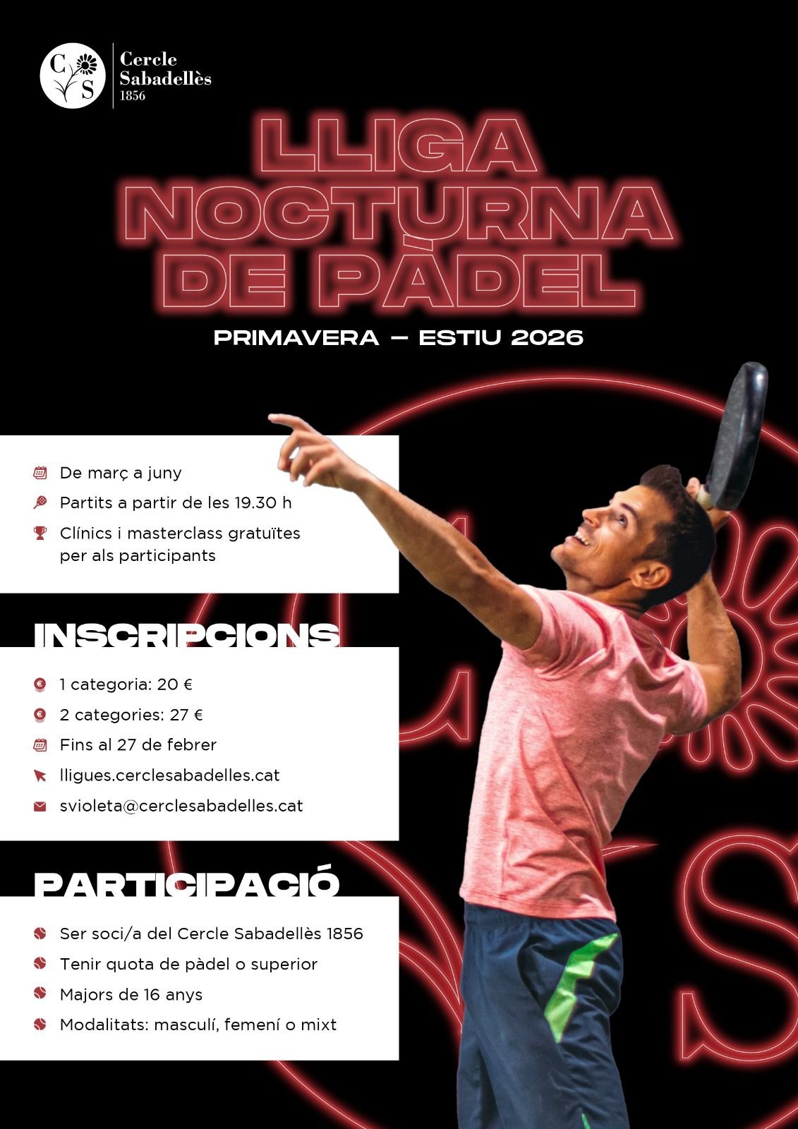 Inscripcions fins diumenge 9 de novembre Categories: masculina, femenina i mixte Preu:20€ una categoria,27 dues categories